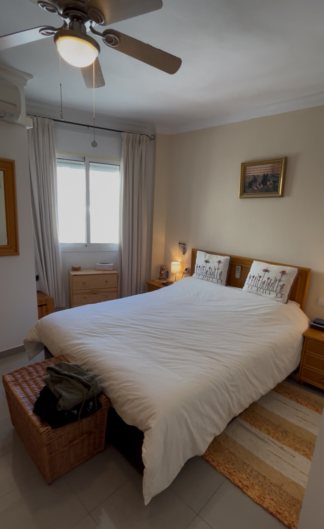This spacious apartment is tiled throughout and has solid wood doors with glass panels. There is air conditioning in the living room, dining room and two bedrooms, plus double-glazed windows with mosquito screens. There is also fibre optic wifi.