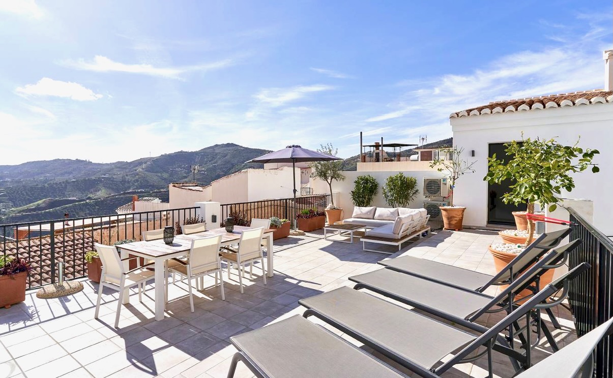 This beautiful house is set in the charming white village of Canillas de Albaida, in the heart of the Axarquía region. Immaculately presented and thoughtfully designed, the property combines generous living space, comfort and breathtaking open views across the countryside towards the Mediterranean coast. Located in the heart of the village, it has a swimming pool and beautiful terraces.