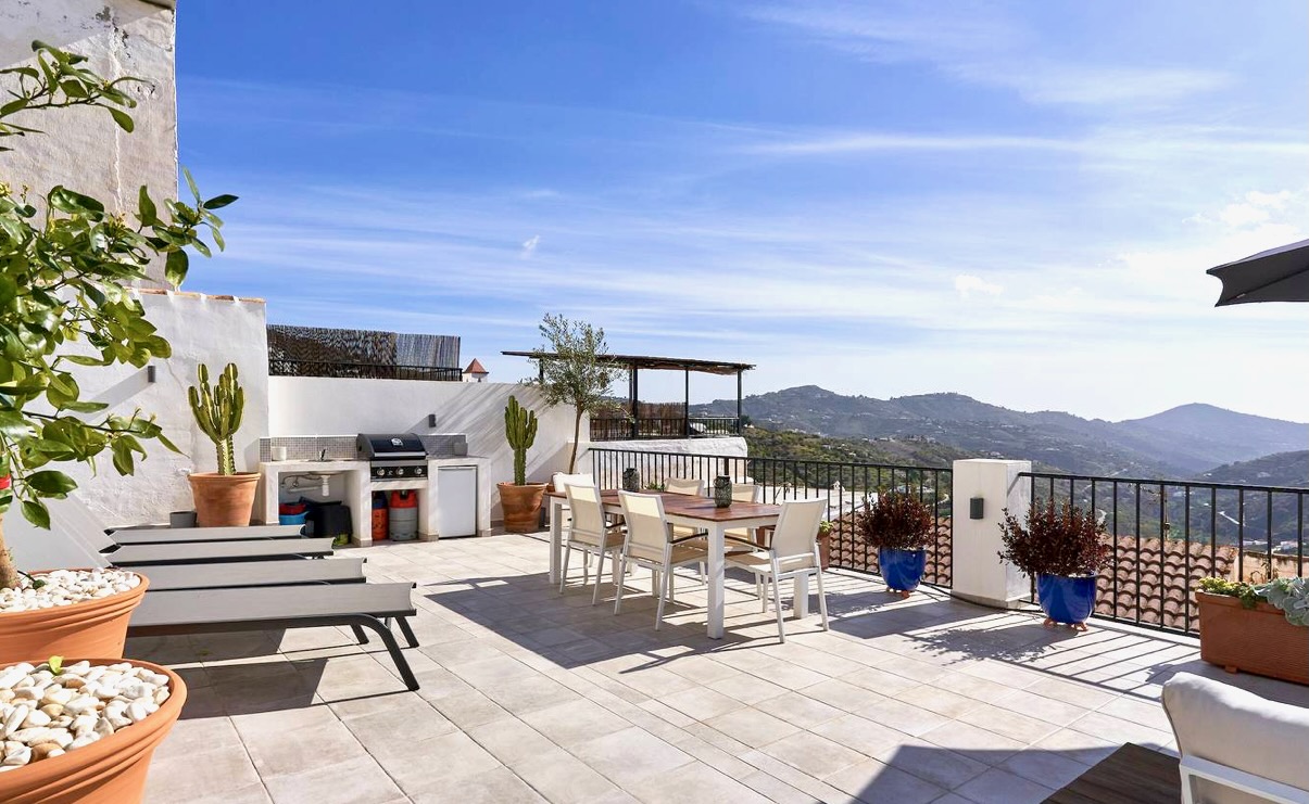 Outdoor living is a real highlight. The property boasts a private swimming pool, several sun-drenched terraces, a balcony and a large roof terrace, all perfect for enjoying the Andalusian climate all year round. An outdoor kitchen with barbecue and an exterior shower complete this inviting space, making it ideal for entertaining and relaxed outdoor living.